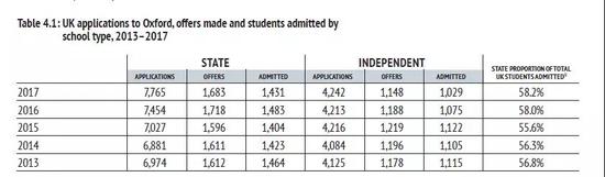 此外,近五年,被录取的英国学生55%以上都来自公立学校,2017年达到了58.2%。但是,这并不意味公立学校的实力更强。