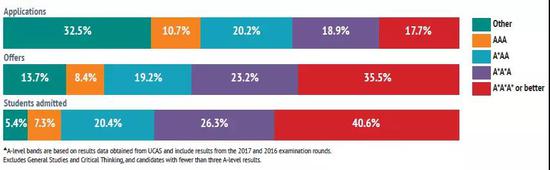 3、学术要求高,A-level成绩高段位者占比约40%