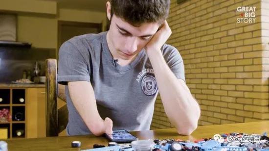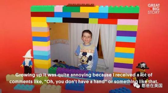 在9岁那一年,他真的用乐高玩具拼接出了人生中的第一条“乐高手臂”,