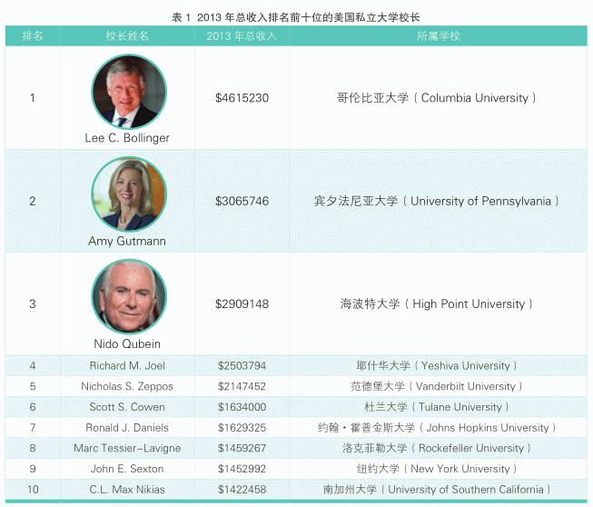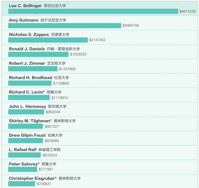 图 美国著名私立大学校长2013年收入排名