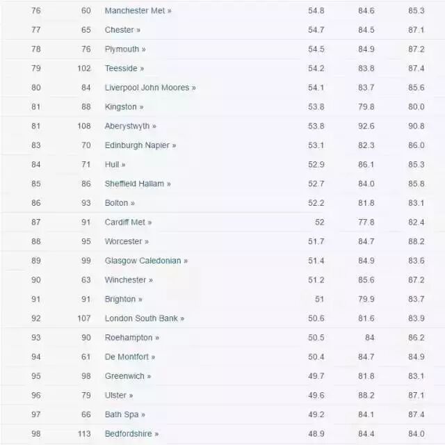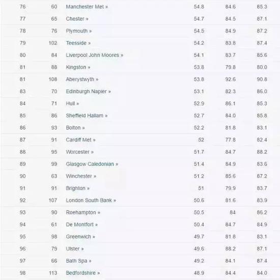 5、Career prospects:就业前景,实则反映了该校学生就业率,但因为这个数据基本都从英国本地学生那儿得来,对大多数留学生来说并非主要参考因素。