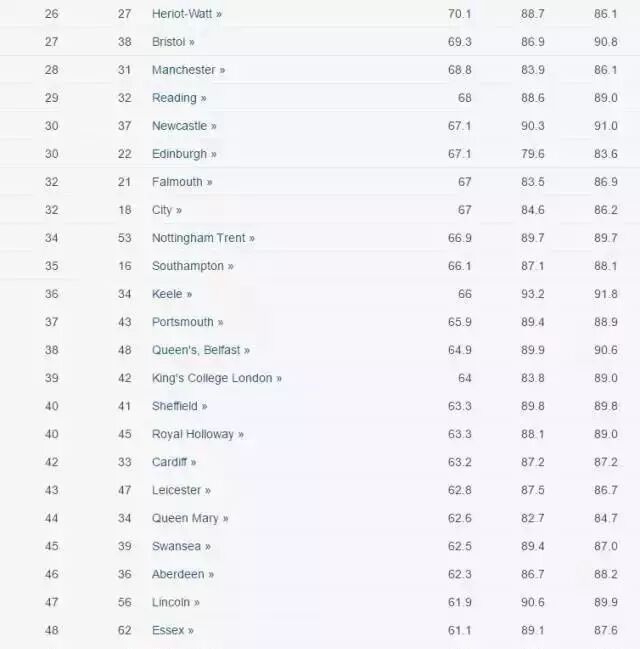 Guardian排名因其独特的全国普查的特性,从某种程度上而言,具有相对的客观性。和Times的排名比较,Guardian的评比角度更为特别,它的排名更加侧重于就业角度。