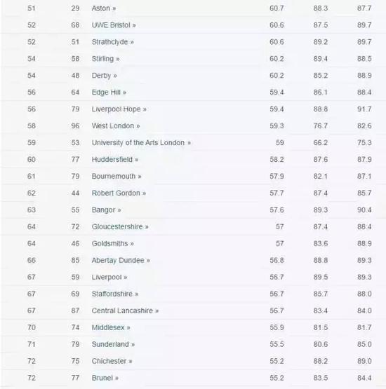 2、NSS Overall:整体,也就是全英学生调查中,学生对于该大学的整体满意度。
