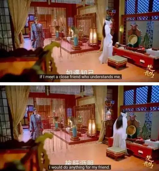 “如遇知己,披肝沥胆”被翻译成了“如果我遇到一个懂的朋友,我愿意为他做一切事”