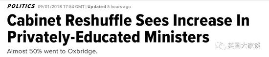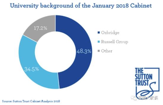 比如英国首相梅姨最近重组的内阁,接近一半的成员来自“牛剑”(Oxbridge)。其余大多来自罗素联盟大学,仅有17.2%既非罗素也非牛剑。