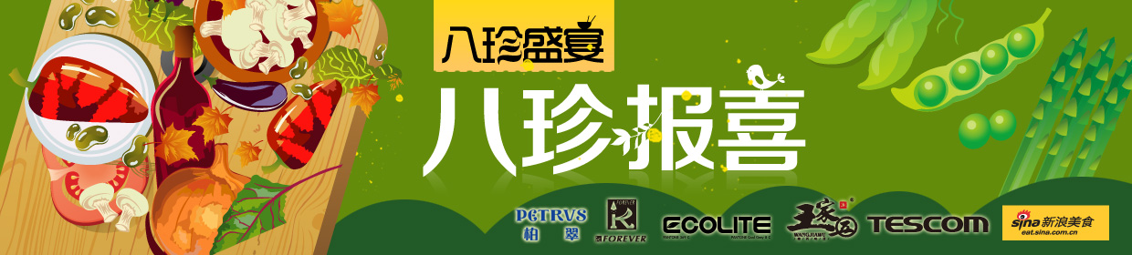 八珍盛宴之八珍报喜为新浪美食博主组队PK活动。参与方式:报名选出8位队长,各位博主可以毛遂自荐,每位队长自行招募3名组员,完成美食战队的组建。八仙过海各显神通;每队长带领组员在1月5日至2月5日之间策划并且完成一桌代表本战队的新春筵席(共8道菜),冷菜、热菜、汤品等自行搭配。并为其八珍报喜命名;8组战队的盛宴制作完成后由新浪美食与专业厨师评审团队进行最后评选。