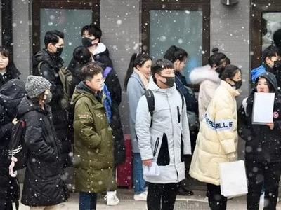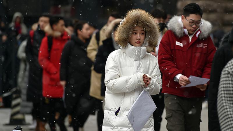中戏艺考开幕 俊男靓女雪中艺考看点十足