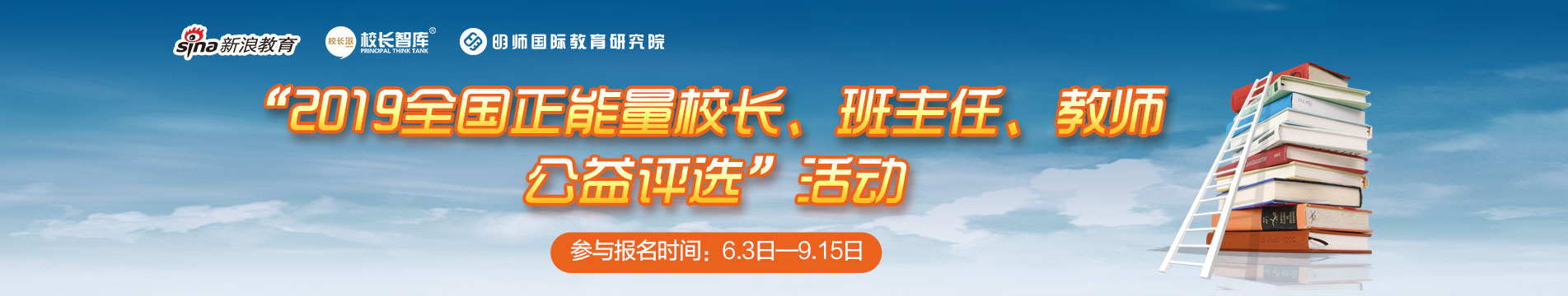 弘扬主旋律、传播正能量。2019年6月,由新浪网教育频道、校长智库教育研究院、明师国际教育研究院联合举办的“2019全国正能量校长、班主任、教师公益评选”活动盛大开启。 深入发掘教育界的优秀师资队伍,充分展现教书育人的精神风貌。值此祖国70周年华诞之际,寻找有教育情怀、有教育担当、有改革意识的正能量校长;有爱心、有责任心、有智慧的正能量班主任;受学生喜爱、有教学成果、课堂创新的正能量教师70位教育工作者。 中国教育的正能量,传播有温度的教育故事!