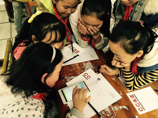 其实2015年,CC英语“3S线下课堂+线上微课堂”就已经开始走进边远地区学校以及城市周边的农民工学校。每一次当羞涩的孩子走进桌椅已经分成小组的课堂,都会诧异,会欣喜,刚开始有些孩子还听不懂“one、two 、three”,但这并不妨碍他们在课堂上的积极性。慢慢地,他们越来越进入状态。从明白课堂上的英文指令,到开始进入热烈的讨论,再到成句的英文输出……一点一点的变化,孩子们脸上都洋溢出了发自内心快乐的笑容。3S课堂让学生真正的成为课堂的主体,实现了行动和思维的双重活跃。不论是临近贵阳的修文久长、六桶,还是远在黔南边陲的县城平塘,大家感受最深的除了孩子们的简单淳朴,积极阳光,还有就是他们对新鲜的英语课堂的期待。