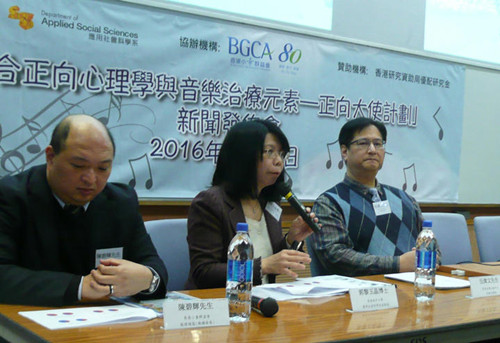 香港城市大学应用社会科学系与香港小童群益会合作推行“整合正向心理学与音乐治疗元素——正向大使计划”,在2014年9月至2015年12 月,以问卷形式访问1700多名中二至中三学生,以了解他们的焦虑和抑郁状况、主观快乐指数,以及影响他们情绪和快乐感的正反因素。