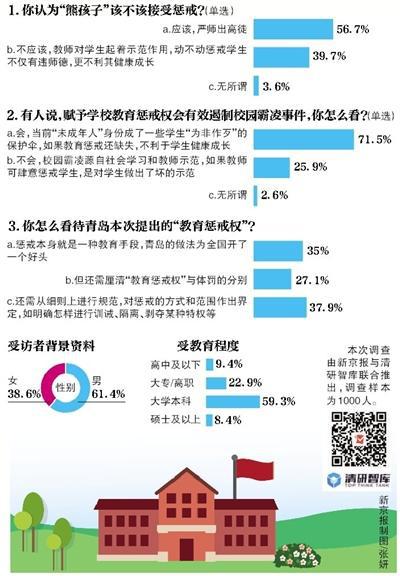 近日,青岛市政府发布的《青岛市中小学校管理办法》中,明确提到“中小学校对影响教育教学秩序的学生,应当进行批评教育或者适当惩戒”。“熊孩子”可以被惩戒,这是全国或地方教育性法规中罕见的提法。对此,我们需要关注什么?本期“京报调查”(新京报与清研智库联合推出)就此展开调查。