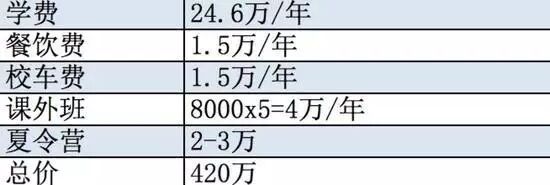 但是,如果拿着这购买条件简陋的学区房的400万,用来都国际学校的话,这种投资怎么样?大概估算一下,国际学校的学费在15-25万左右,从幼儿园到高中毕业在国际学校读书,差不多需要花费300万左右。当然,在国际学校高中毕业后,出国留学读大学的费用每年也得有几十万了,这价格确实比在国内高上不少。