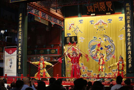 在启动仪式上,来自芳草地学校等11所学校国际部的200多名外国留学师生、家长,聆听了京剧名家张建国、姜亦珊等表演《我正在城楼观山景》《状元媒》《天女散花》《罗汉斗悟空》等。