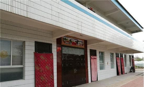 该校的一栋两层教学楼,1楼教室已被改造成为住房。除一间教室作为仓库外,其余均有床铺(或炕)和其他生活用品。楼前绳子上晒着衣物,楼东侧操场也种了大棚冬枣。