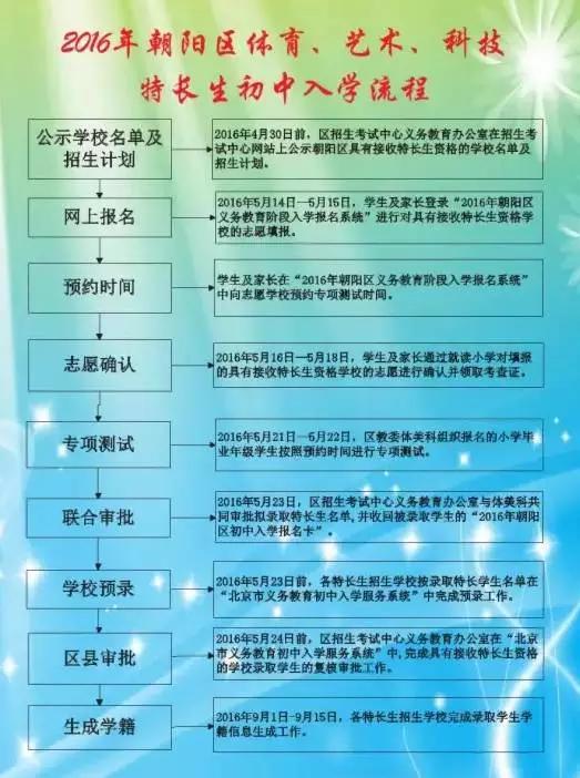 (注意:今年各区特长招生流程或许不变,只是时间有变,建议参考2016年情况熟悉流程,具体仍需以今年政策为准。)