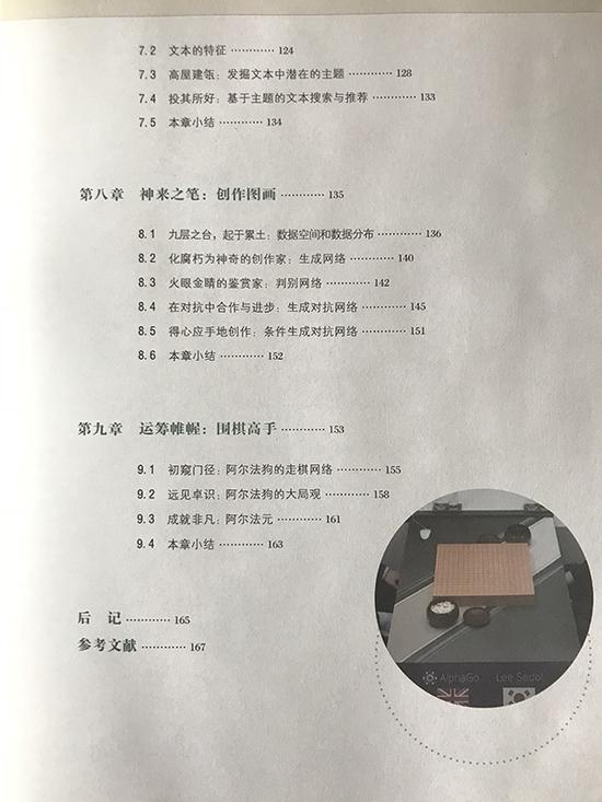 澎湃新闻看到,全书共分9个章节。从第一章介绍人工智能简史开始,之后介绍计算机如何进行图片识别、感知和理解声音;如何对视频进行识别;再到计算机如何进行文字理解和自动创作;最后对深度学习点到为止。编排从易到难,循序渐进,以基础普及性的知识为主。同时,教材每一页都有彩色图表,并引入了大量的科普内容和实例帮助学生形象地理解,比如由Alpha Go战胜围棋高手引入强化学习的算法。
