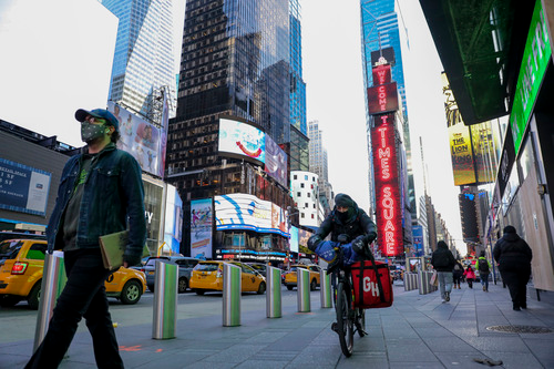 11月18日,行人走在美国纽约时报广场。新华社记者王迎摄