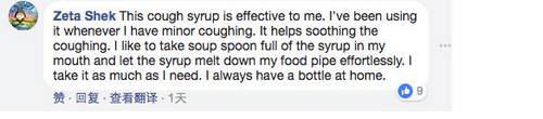 “这个咳嗽药对我简直太有效啦!每次有一点咳嗽的时候我就会吃它,它让我舒服了很多。每次吃的时候,我都会舀一大勺,然后让糖浆慢慢化在嘴里,再慢慢让它流淌而下,只要需要的时候我就会吃,家里常备着一瓶!”