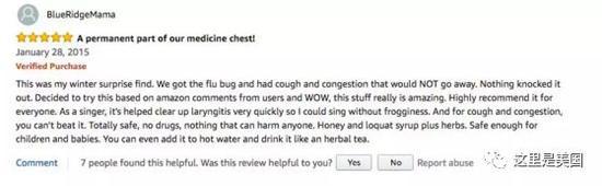 “对感冒的效果有限,但是对于喉咙痛和咳嗽来说简直太有效啦!嗯,虽然我现在每次感冒就会赶紧放两勺在热水里喝掉。”