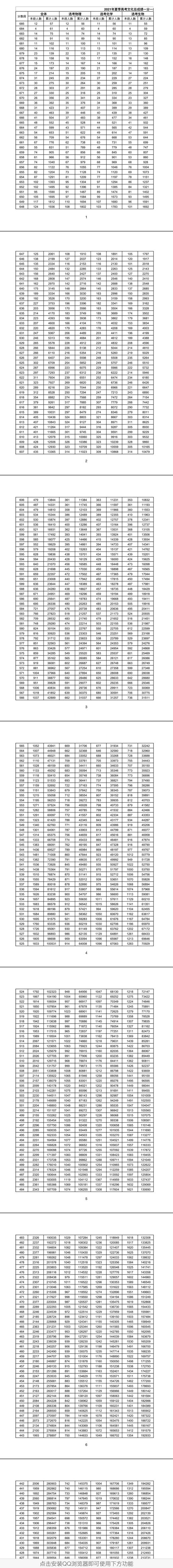 山东2021高考成绩一分一段统计表