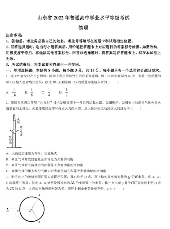 2022年高考考试已结束,以下为2022高考物理真题(山东卷)。