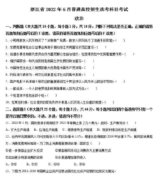 政治考试已结束,以下为2022高考政治真题(浙江卷)。