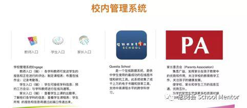 一个好的国际学校,应该有一套完整的学校信息管理系统,分别涉及到学生数据管理,家校沟通,教学信息和业务管理,以及升学指导系统,可供学生使用的电子图书借阅系统,论文查询和防抄袭系统。