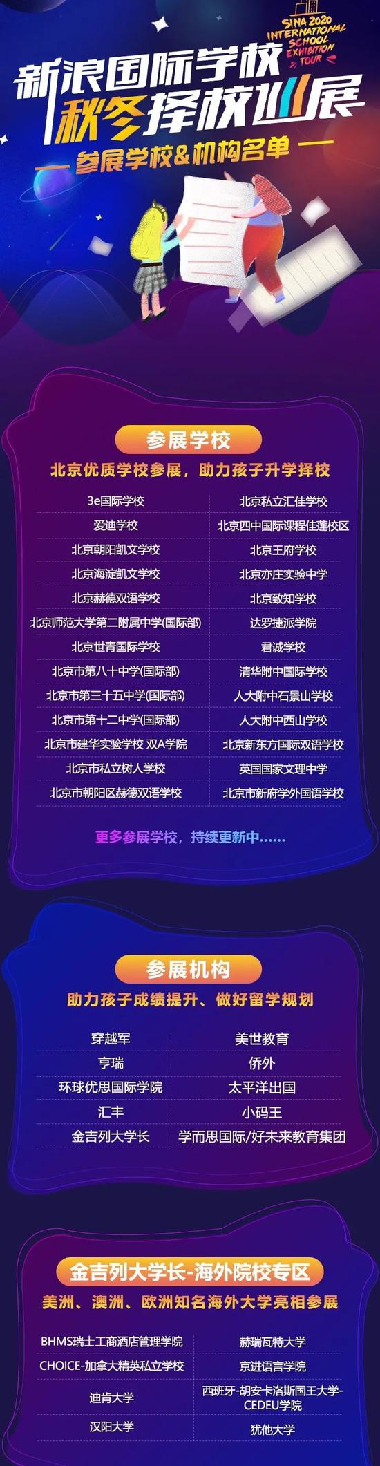 参加“新浪2020国际学校秋冬择校巡展”,为孩子选择一所优秀的北京学校。