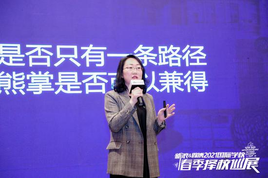 北京市新英才学校艺术升学指导老师苑媛在展会上发表了演讲,主题为“后疫情时代的升学何去何从?”,她指出,人生不是单行线,不是一条道走到黑的,家长在给孩子规划升学方面,要给孩子提供一个灵活的方案。对此,她认为家长的视野和家长的格局才是孩子的起跑线。
