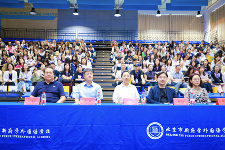 此次活动由北京外国语大学教育培训中心与新府学外国语学校联合承办,顺义区教委民办科科长张琪悦出席,北京外国语大学国际教育合作中心总经理叶明、北京市新府学外国语学校创始人卢振虎、运营校长姚宇堃、初小部校长辛玲,学术校长马昕光共同参加了此次活动。