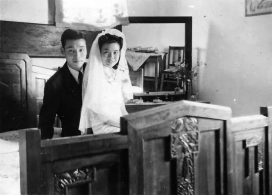结婚当天,我们在院子里摆了椅子,知道我们婚事的燕京同学、四川的同事朋友们都来了。我们准备了一点简单的茶点,也不收礼,也不宴请。我们有个同学家就在成都,他父亲是位医生,做了我们的主婚人。我们还把学校的风琴抬出来,放在草地上。一位协和医院的大夫,我记得姓张,他很会弹那种带管子的大管风琴,我们就请他来给我们演奏。我穿上茅爱立送我的新衣服,非常漂亮。蒋良玉校长的一位加拿大朋友,借给我一块白纱,给我做了半截的婚纱披上。当时大家就都说我们这个结婚还挺像样的。那时候抗战刚结束,很多人连家都没了,在外面颠簸,我们能这么办一个虽然简陋,但也有模有样的婚礼,已经实属不易了。