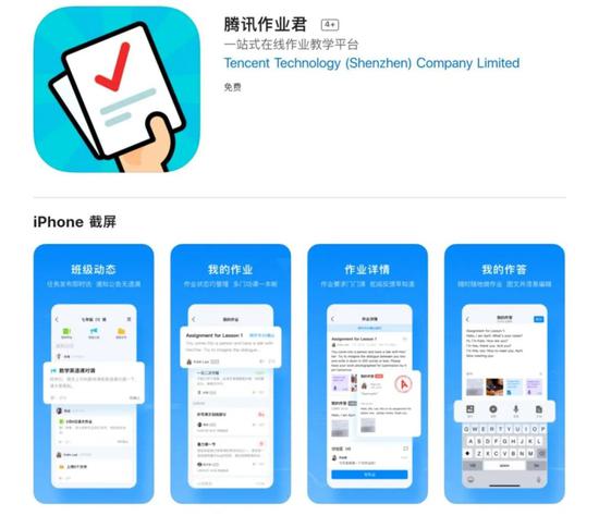 据苹果应用商店中有关该产品的官方介绍,「腾讯作业君」这款在线教育产品,提供在线组题、发布作业、在线提交作业、批改作业、作业结果统计等一站式作业服务。