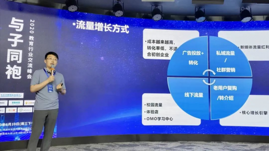 爱培优CEO张金荣带来《教培机构校内校外流量获取的路径思考》,张总表示教育是低频服务,却有高频需求,教培机构要找到折中点,实现用户需求和商业需求的统一,才能到达充分留存和激活的目的。