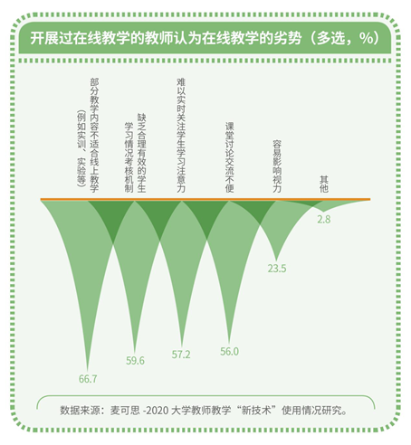 数据显示,超过六成教师认为在线教育优势在于提供更多可选的课程资源,学生可以灵活安排学习时间,以及教师可以利用软件及时获取学生课堂学习反馈。