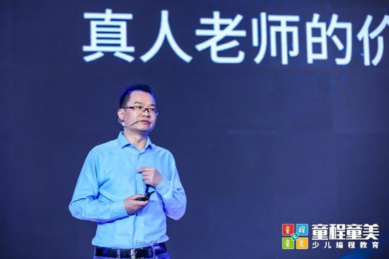 唐晓澜在《线上线下融合,构建全新学习场景》的演讲中,重点介绍了童程童美于2018年7月推出的自主研发的在线直播学习平台“童程在线”,通过在线教育的方式让更多学生可以接触到优质编程教育。