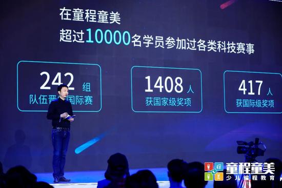 迄今,童程童美已有超过10000名学员参加过各类科技赛事,242组队伍晋级国际赛,1408人获得国家级奖项,417人获得国际级奖项。潘公博强调学员通过这些赛事项目可以充分锻炼能力和享受成果,全面塑造孩子的综合素质。