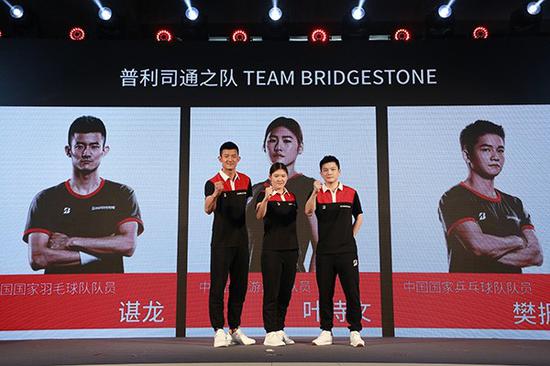 2018年6月14日,奥运会全球合作伙伴普利司通在北京举办了以“CHASE YOUR DREAM(逐梦前行)”为主题的普利司通之队启航仪式。普利司通携手羽毛球运动员谌龙、游泳运动员叶诗文、乒乓球运动员樊振东成立普利司通之队,并任命他们为“普利司通运动员大使”。普利司通之队将作为普利司通的活动形象代言人,深入参与普利司通在中国的各项企业公益活动,企业市场活动及内部员工交流中,积极传递奥运理念。