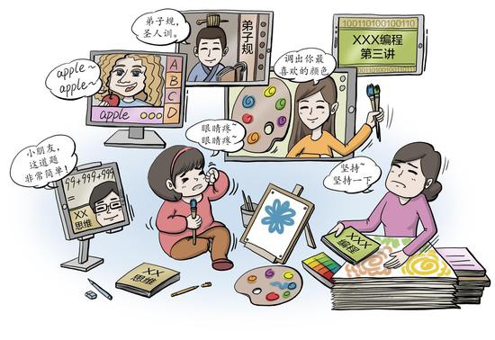 周末,田静发现一向乖巧好学的儿子闹起了情绪,抱怨自己课太多。“我们仔细一盘算,发现还真是个问题。之前总觉得每节课也就15分钟左右,可不知不觉越报越多,现在每周语数外三门加起来就有15节,另外还有2节编程课,2节口语课,如果再报美术,眼看就要突破20节,对5岁孩子来说,总时长确实有点难以承受。”