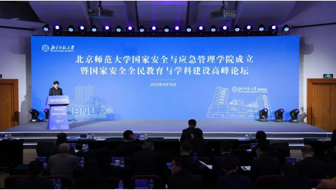 4月14日,北京师范大学举行国家安全与应急管理学院成立仪式暨国家安全全民教育与学科建设高峰论坛。