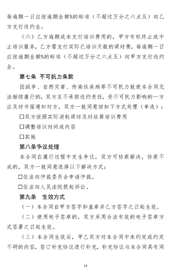 务必规范签订培训合同