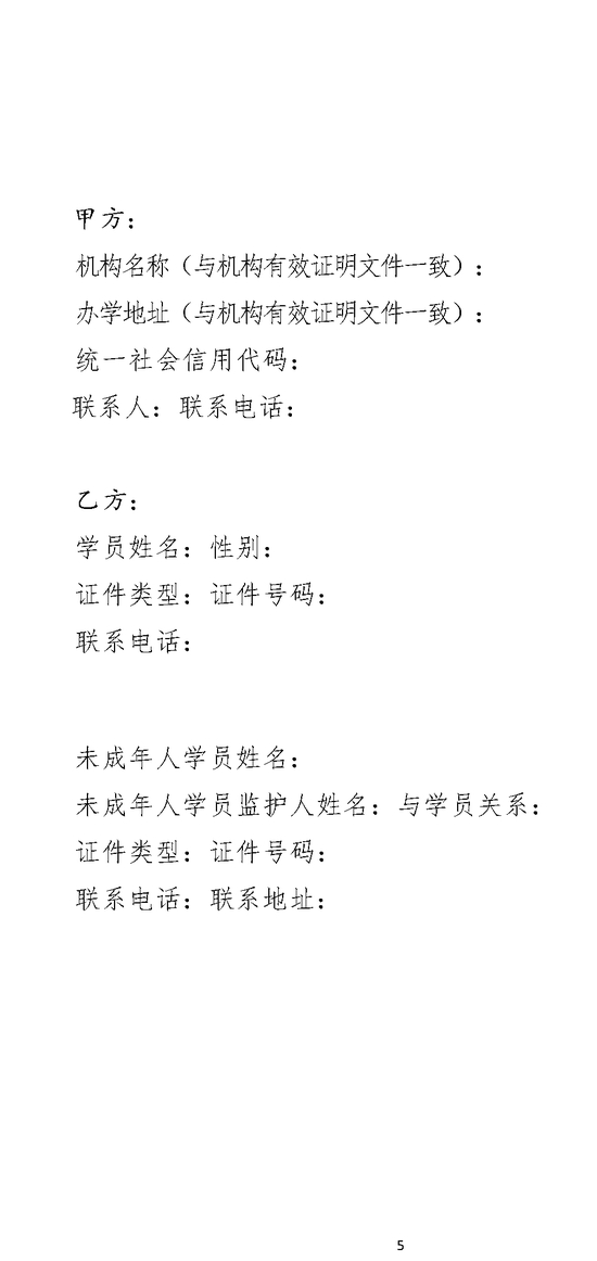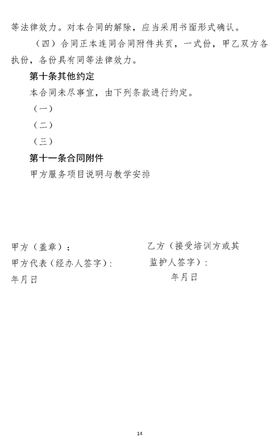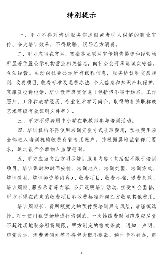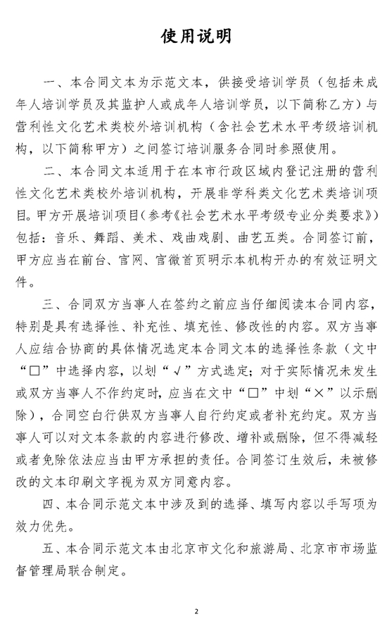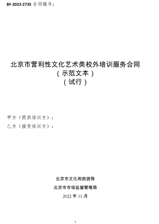 以下为《 北京市营利性文化艺术类校外培训服务合同(示范文本)(试行)》,请家长参考↓↓