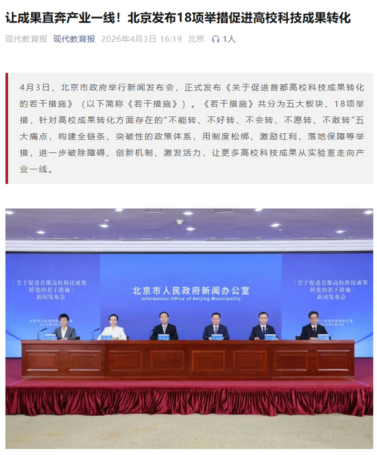 现代教育报:北京发布18条举措破解高校科技成果转化难题