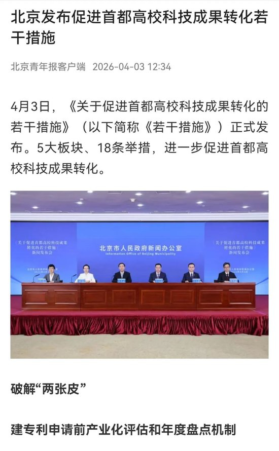 北京青年报客户端:北京发布促进首都高校科技成果转化若干措施