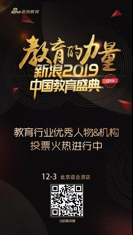 大浪淘沙始见金,每一个时代,都不缺逆风而上、把握机遇,把幸运变成惯性、用胜利颠覆胜利的教育人。中国教育盛典“行业优秀人物&机构投票”再度开启,正是为业内执牛耳者提供一个表达态度、彰显自我的平台。扫码/点击阅读原文参与评选,年度荣耀奖项花落谁家,您的一票,至关重要!所有奖项将在2019年12月3日在北京诺金酒店举办的新浪2019中国教育盛典中揭晓,敬请期待。